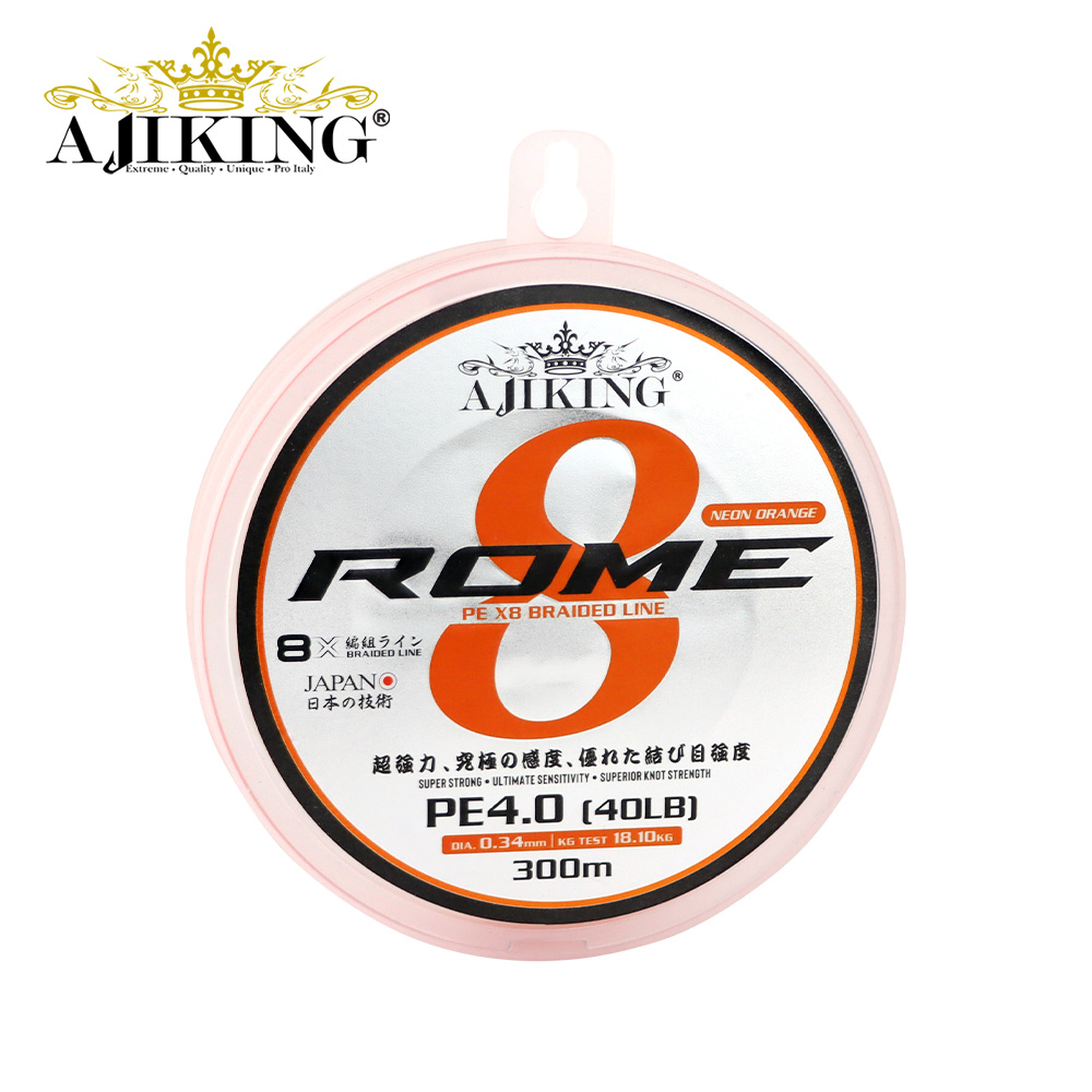 Home>Products>Lines>Braid>AJIKING LINE – ROME PE X8 AJIKING LINE – ROME PE X8 Features: • Super strong • Ultimate sensitivity • Superior knot strength Colour: Neon Orange Packages: 300m Category: Braid Related products AJIKING PRO GAME BRAID Read more AJIKING ATOM BRAID 8X Read more AJIKING YELLOW FIN SUPER BRAID Read more AJIKING ATOM BRAID SW 13X Read more